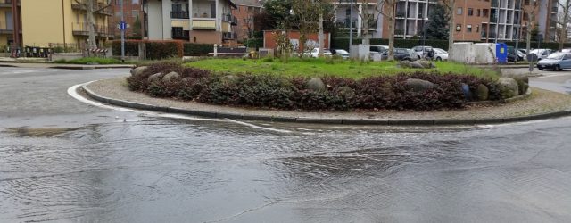 L'ultima rotatoria della via, in direzione Torino, è stata sommersa da oltre 10 cm di acqua a causa della rottura di una vicina conduttura. Galleria fotografica.