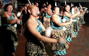 Ad aprire la serata ci ha pensato il NgaUri a Te Wai-o-Taiki Culture Group (Gruppo Culturale “I Discendenti del Fiume Wai-o-Taiki”) composto da una ventina di elementi della comunità Maori di Auckland East delle Glen Innes, sulle rive del fiume Wai-o-Taiki in Nuova Zelanda. Molto applaudita la loro performance basata essenzialmente su canti e balli rivolti a presentare scene di vita quotidiane della comunità, in linea con l’obiettivo di mantenere vivo l’orgoglio per l’appartenenza all’etnia Maori. Ed è con questo spirito che il gruppo si esibisce con successo in tutto il mondo.