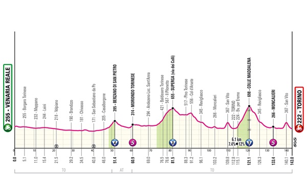 La prima tappa della 107esima edizione prenderà il via da Venaria Reale e proseguirà per Borgaro, Mappano e Leinì. Il giorno dopo lo start è a San Francesco al Campo, con passaggio a Ciriè.