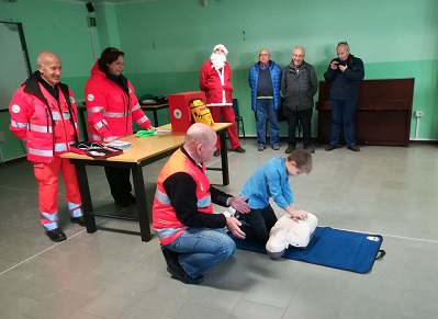 “La Croce Verde è formata da persone molto generose – ha continuato il Sindaco Claudio Gambino – perché quando la sezione Borgaro-Caselle ha festeggiato i suoi 40 anni, ha deciso di fare un regalo alla città”. Successivamente i volontari della Croce Verde hanno mostrato l’uso del defibrillatore ai bambini presenti, coinvolgendone anche alcuni facendo loro provare la manovra di rianimazione. Dolce conclusione con Babbo Natale e alcuni volontari della Pro Loco, che hanno distribuito caramelle e dolciumi a tutti i bambini dell’Istituto.
