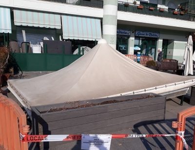 La polizia locale ha bloccato il montaggio della struttura per mancanza dei permessi necessari. Non è chiaro per quanto tempo permarrà questa situazione. Discordanti le voci su una prossima riapertura del negozio.