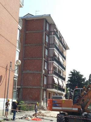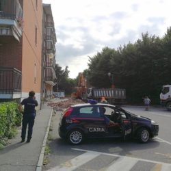Borgaro – Nella notte, intorno alle 23,30 il paramano esterno dello stabile di via Spagna 5 è crollato. Nella serata di ieri, lunedì 26 giugno, una grossa crepa aveva fatto intervenire Vigili del Fuoco e Carabinieri di per far evacuare le 12 famiglie che abitano lo stabile (più una tredicesima al momento è in ferie), che appariva a rischio crollo. Le famiglie che hanno passato la notte a casa di parenti e amici, o sistemati presso l’Hotel Le Tre Valli.