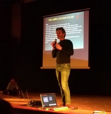 Oltre alla mattinata con i ragazzi, nella stessa giornata Gianpietro ha tenuto anche un incontro rivolto ai genitori e alla cittadinanza sempre presso la Sala Polivalente di Cascina Nuova. Un uomo che ha raccontato con estrema umanità la storia della sua vita, dei suoi sogni, dei suoi successi, ma anche dei suoi errori e della sua tragica perdita. “Nel 2012 ho lasciato mia moglie, ma dopo poco tempo mi sono reso conto del mio errore. Ho deciso che sarei tornato da lei a dai miei 3 figli, il 24 dicembre del 2013, alla vigilia di Natale. Ma un mese prima del mio ritorno mi sono ritrovato davanti a un fiume. Sono le 3 di notte, accanto a me un ragazzo che ho appena conosciuto, Cris, mi mostra il punto in cui mio figlio Emanuele si è buttato dopo aver assunto una pasticca a una festa” racconta Gianpietro. In quello stesso punto, 10 anni prima, lui ed Ema avevano cercato di salvare il pesciolino preferito del bambino, che era però stato mangiato da un’anatra. “Io ridevo, mentre mio figlio piangeva e mi tirava i pugni. Non capivo quale trauma doveva essere stato per lui. Quella tragica notte ho pensato di buttarmi anche io nel fiume. Il giorno prima aveva visto Ema: era serio, più del solito. Gli ho detto dobbiamo parlare, ma poi ho guardato l’orologio, che ora non porto più, e sono andato via. In quel momento ho visto la tristezza nei suoi occhi”. In preda al suo dolore e alla sua rabbia, due giorni Gianpietro ha sognato Ema. “Mi ha trasmesso un’energia inspiegabile, da lì ho capito che se non avevo potuto aiutare mio figlio avrei aiutato altri giovani”.