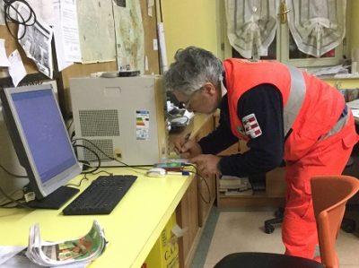 Veniamo accolti in sede da una serie di volantini sparsi sui tavoli che recitano: “Scegli noi“, piccola pubblicità per dire alla popolazione -giovane -siamo la Croce Verde. Intanto, appena terminato il giro di presentazione, la voce gracchiante della radio del 118 impartisce ordini in codice a Borgaro-Caselle: servizio zona Madonna di Campagna, Carabinieri sul posto, seguono le indicazioni logistiche ed altre che non possiamo citare. L’equipaggio parte. Per il tempo che ci intratteniamo in sede non li vedremo più. E loro avevano appena preso servizio. Smonteranno il mattino successivo. Restiamo così nella calda sede borgarese di Cascina Nuova dove Alex è impegnato a sistemare la parte burocratica del servizio, mentre noi siamo intrattenuti e meravigliati dalla preparazione e professionalità di Diego, il giovane infermiere d’urgenza e di emergenza, il quale ci spiega alcuni aspetti del suo lavoro, ma sopratutto ci presenta ancora una volta il servizio, come “nucleo sanità ed ambiente”. Questa è una altra piccola perla tutta della sezione borgarese. L’entusiasmo di Diego , traspare da ogni sua parola ed il tempo trascorre veloce, non avremmo spazio per scrivere tutto ciò che ci ha raccontato. Vi riserviamo l’entusiasmo e la meraviglia che abbiamo provato nell’ascolto di un servizio prestato che ha impegnato questo “nucleo speciale di militi” in una assistenza di due giorni e due notti continuative, al seguito di un evento che vedeva impegnati i partecipanti su un percorso di 700 km in motocicletta su sterrato. Quando si dice che un viaggio si compie almeno tre volte… noi siamo quelli che lo abbiamo solo sognato… ma ne è valsa la pena.
