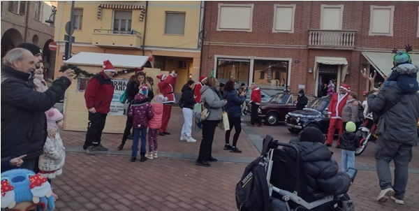 CASELLE – Domenica all’insegna del movimento per la città dell’aeroporto, con il moto-raduno dei Babbi Natale e i Babbi Natale in Cammino. Attraverso percorsi diversi le vie cittadine si sono quindi colorate di rosso e bianco, per poi ritrovarsi tutti insieme in piazza Boschiassi. Ad attendere i motociclisti – guidati dal capogruppo di maggioranza Antonino Bocchetta – e il gruppo di camminatori – insieme alla consigliera comunale Sonia Fava – la Pro Loco, che ha distribuito cioccolata calda a tutti i presenti e caramelle per i più piccoli. Presenti anche altre associazioni del territorio.