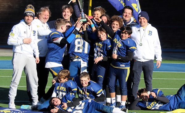 BLITZ, CAMPIONI NAZIONALI UNDER 12 – Al Velodromo Vigorelli di Milano è stato assegnato lo scudetto U12 del Campionato italiano Fidaf di football americano. In finale i Blitz Cirié, hanno battuto i Daemons Cernusco per 40 a 14. I gialloblù, per la seconda volta campioni nella loro storia, hanno ribaltato ogni pronostico superando avversari più quotati e dando vita a una fantastica finale. Nella prima semifinale, i Blitz si sono scontrati contro i ragazzi della Seamen Milano in un match combattuto fino alla fine, dove la grinta e la determinazione dei ragazzi di Ciriè hanno fatto la differenza. Stessa cosa è avvenuta in finale, un ultimo atto dove i Blitz hanno dimostrato tutto il loro valore.
