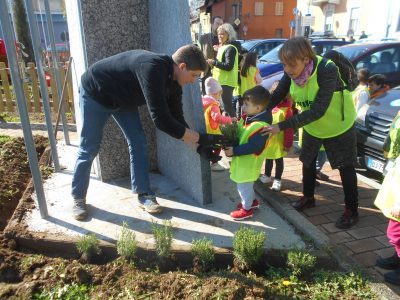 Dopo aver adottato il monumento lì presente, i piccoli della Sezione G della scuola materna Andersen hanno abbellito la zona con delle piante.