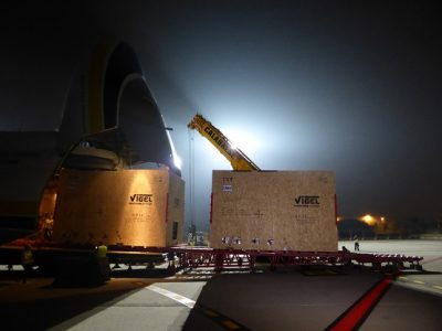 Come abbiamo detto, il trasporto aereo di questo carico eccezionale è avvenuto tramite l’utilizzo di un Antonov 124, uno dei cargo più grandi al mondo, lungo 70 metri e con un’apertura alare di 73 metri, inferiore per dimensioni solo all’Antonov An225 e all’Airbus 380, .