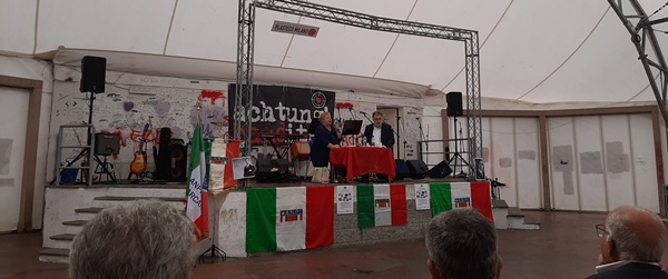 Ultimo appuntamento del pomeriggio è stato il concerto degli Achtung Banditen! Gruppo che vuole ridare attualità ai canti partigiani – rivisitanti in chiave principalmente rock, ma non solo – per veicolarle con il loro bagaglio di valori presso le nuove generazioni. Nella stessa occasione è stato possibile anche visitare la mostra sul “Ventennio Fascista”, recuperata da un deposito della Stazione Porta Nuova da Mirko Garofalo, consigliere dell’ANPI Caselle – Mappano.