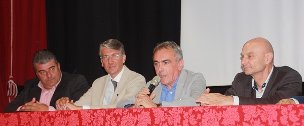 La Settimana Tricolare 2019 è stata presentata ufficialmente venerdì 5 lyglio nel teatro Don Andrea Flecchia di Lanzo Torinese. Una scelta, quella della “capitale” delle nostre Valli, in linea con la politica del Velodromo Francone, che di anno in anno punta a coinvolgere il territorio con sempre maggiore determinazione nelle proprie iniziative. E proprio di territorio e di sinergie per lo sviluppo del Canavese e delle Vali di Lanzo – sotto l’egida della Regione Piemonte, sempre attiva e determinante nel sostenere concretamente le iniziative del Velodromo – si è parlato nel corso della conferenza di presentazione. Fra i relatori, dopo il saluto e gli onori di casa da parte del Vicesindaco di Lanzo Fabrizio Casassa, il Presidente del Velodromo Francone Giacomino Martinetto, il Sindaco di Rivarolo e portavoce dei Comuni del Canavese occidentale nella Città Metropolitana Alberto Rostagno, il consigliere regionale Claudio Leone, il Vicepresidente del Comitato Regionale Piemonte della Federazione Ciclistica Italiana Pierfranco Gugliermetti, il Presidente dell’Agenzia per lo Sviluppo del Canavese Fabrizio Gea, il Sindaco di San Francesco al Campo Diego Coriasco, il responsabile del Centro Avviamento Pista Davide Francone e il referente del settore Amatori del Velodromo Francone Andrea Rastello.