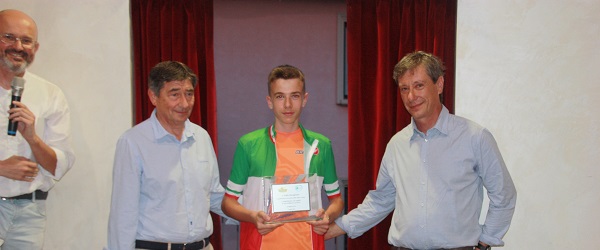 Nel corso della serata il Velodromo Francone ha premiato Fabio Bassignana, neolaureatosi campione italiano di Cross Country Olimpico (Allievi I anno). A conferire il riconoscimento, il Vicepresidente del Velodromo Diego Ferron e il direttore sportivo del team Androni Giocattoli Giovanni Ellena, gradito ospite della serata insieme a uno dei” suoi” giovani campioni: Mattia Viel, cresciuto sulla pista del Francone e oggi professionista nelle file dell’Androni Giocattoli, oltre che testimonial ufficiale della stagione 2019 del Velodromo Francone.