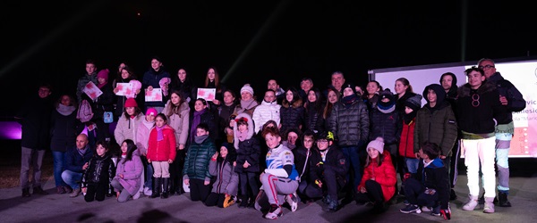 In precedenza, però, si è svolta la marcia in rosa, dal municipio all’impianto di via Ghetto, che ha visto una massiccia partecipazione della comunità sanfranceschese e non solo: associazioni, bambini, famiglie, cittadini di ogni età si sono accodati alla colorata vettura che apriva la camminata, al gonfalone del comune, al sindaco Diego Coriasco e all’assessore regionale allo sport Fabrizio Ricca. Terminato il corteo, si è tenuto il giro di pista con la fiaccola portata dai giovani atleti del World on Bike Free Time insieme agli amici del Madonna di Campagna, e poi il momento clou con Nives che accende idealmente un braciere e l’intero Velodromo illuminandolo di rosa. Quindi i saluti istituzionali del sindaco, del presidente del Veledromo, Davide Francone, e dell’assessore regionale. E quest’ultimo nel suo intervento ha fatto un annuncio straordinario, rivelando ufficialmente che la Regione Piemonte ha candidato San Francesco al Campo a Capitale Europea del Ciclismo 2026.