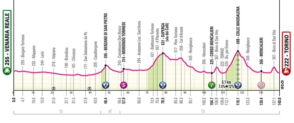 Domani, 4 maggio, prende il via la 107esima edizione della Corsa Rosa. Si parte dalla Reggia di Venaria e si passa per Borgaro, Mappano e Leinì, prima di arrivare a Torino. Domenica 5, la seconda tappa partirà dal Velodromo Francone di San Francesco al Campo, per poi passare per San Maurizio Canavese e Ciriè, attraversare il Canavese e raggiungere il Santuario di Oropa, nel Biellese.