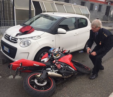 Mappano – Attimi di paura stamattina per un rocambolesco incidente avvenuto in via Rivarolo. Erano le 8.30 circa quando all’altezza del civico 70 una moto Yamaha 125 guidata da D.G. proveniente da Torino in direzione Leinì superando la colonna di autovetture ferme per il semaforo posto poco più avanti andava ad urtare l’autovettura condotta da D.V. che usciva dall’interno della via sulla destra in direzione Torino. La motociclo dopo l’impatto è sobbalzata sulle autovetture parcheggiate sul lato opposto della via, ma per fortuna nonostante lo spettacolare volo il conducente ha riportato lievi lesioni ed è stato subito trasportato dal 118 all’ospedale Don Bosco di Torino per le cure del caso. Sul posto sono intervenuti la polizia municipale di Mappano agli ordini del commissario Roberto Mattiello e i carabinieri della stazione di Caselle ai quali spetta il compito di stabilire l’esatta dinamica del sinistro.