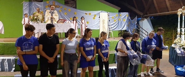 Nella serata di sabato 31 maggio, sotto la tensostruttura di piazza Papa Giovanni Paolo II, si è tenuta la santa messa officiata da don Filippo, seguita della tradizionale processione per le vie della città fino al Santuario di “Nostra Signore del Sacro Cuore di Gesù”. Prima, però si è tenuta l’investitura dei nuovi animatori del Centro Estivo Parrocchiale, che hanno simbolicamente ricevuto una felpa da parte di quelli dello scorso anno.