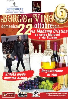Torino – L’associazione Borgo Madama Cristina e l’Agenzia Street Events, con il patrocinio della Circoscrizione 8 e la Città di Torino, organizzano per domenica 22 ottobre la sesta edizione di BORGO DI.. VINO, una festa che negl’anni ha saputo coniugare l’essenza del vino, del buon cibo, dello shopping e naturalmente del divertimento.