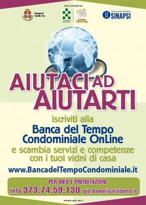 “Aiutaci ad aiutarti” è lo slogan della campagna di lancio utilizzato dall’associazione Sinapsi per far conoscere la nuova piattaforma attraverso la quale scambiarsi servizi tra vicini di casa o dello stesso Comune. Registrarsi è facile: https://www.bancadeltempocondominiale.it/