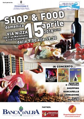 Torino – Shopping tra i negozi del quartiere, musica live e tantissima animazione per bambini e famiglie. Sono questi gli elementi centrali della grande manifestazione dedicata allo Shop & Food che si svolgerà domenica 15 aprile in via Nizza, nel tratto che va da corso Maroncelli fino a via Caramagna. Oltre all’apertura straordinaria dei diversi negozi della via, saranno presenti anche decine di bancarelle commerciali selezionate e una nutrita presenza di artigiani di eccellenza e di produttori diretti provenienti da tutta Italia che esporranno la propria merce con degustazioni gratuite di cibi e vini.