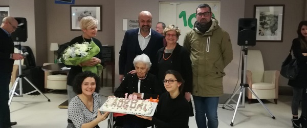 I festeggiamenti si sono svolti lunedì 27 gennaio, alla presenza dei parenti e degli altri ospiti della struttura. A porgere gli auguri alla signora anche il Vicesindaco Fabrizio Chiancone.