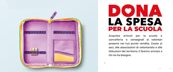 Oggi in 61 supermercati, tra cui quello di Borgaro e Cirié, si svolge la raccolta annuale di materiali didattici e di cancelleria in favore di studenti e famiglie bisognose.